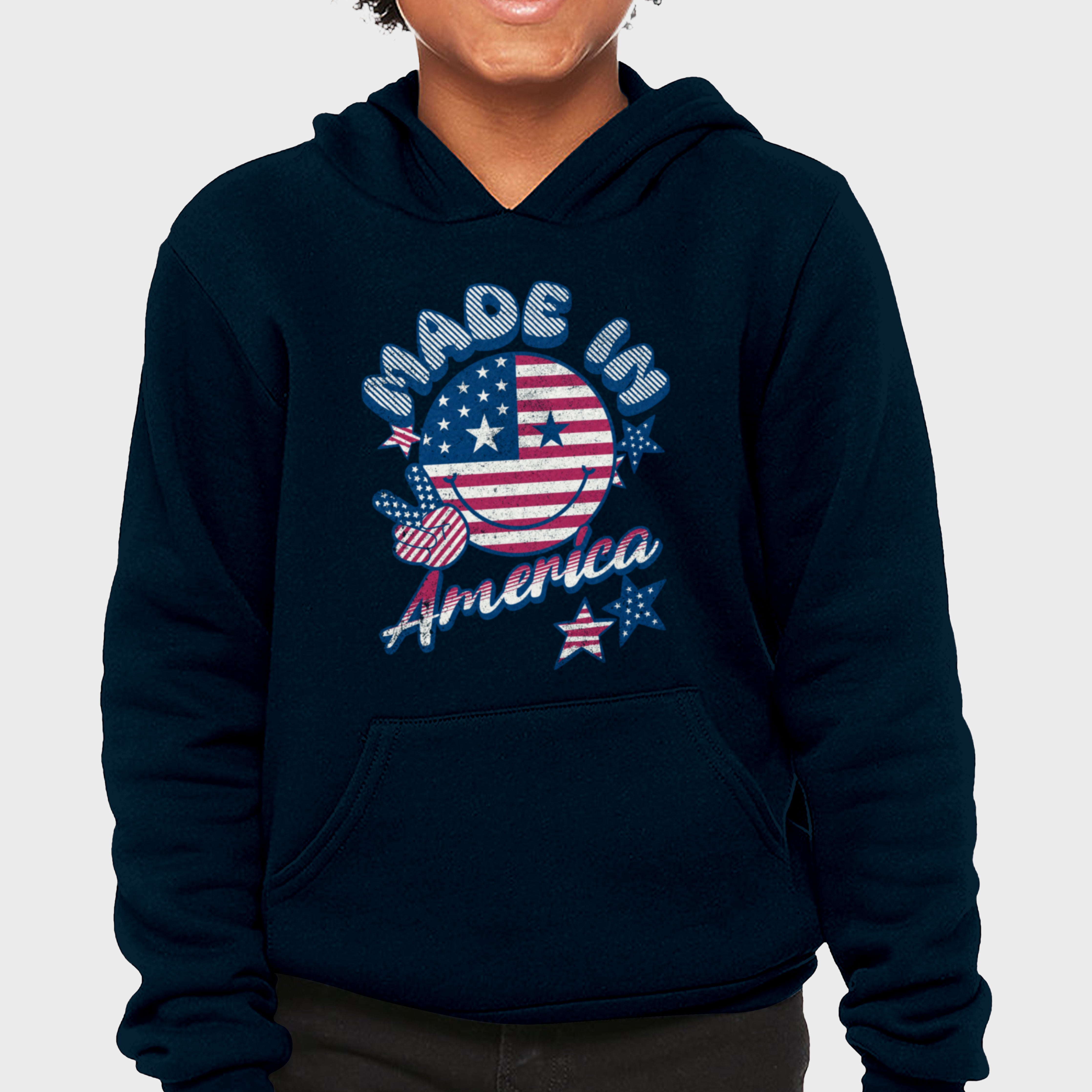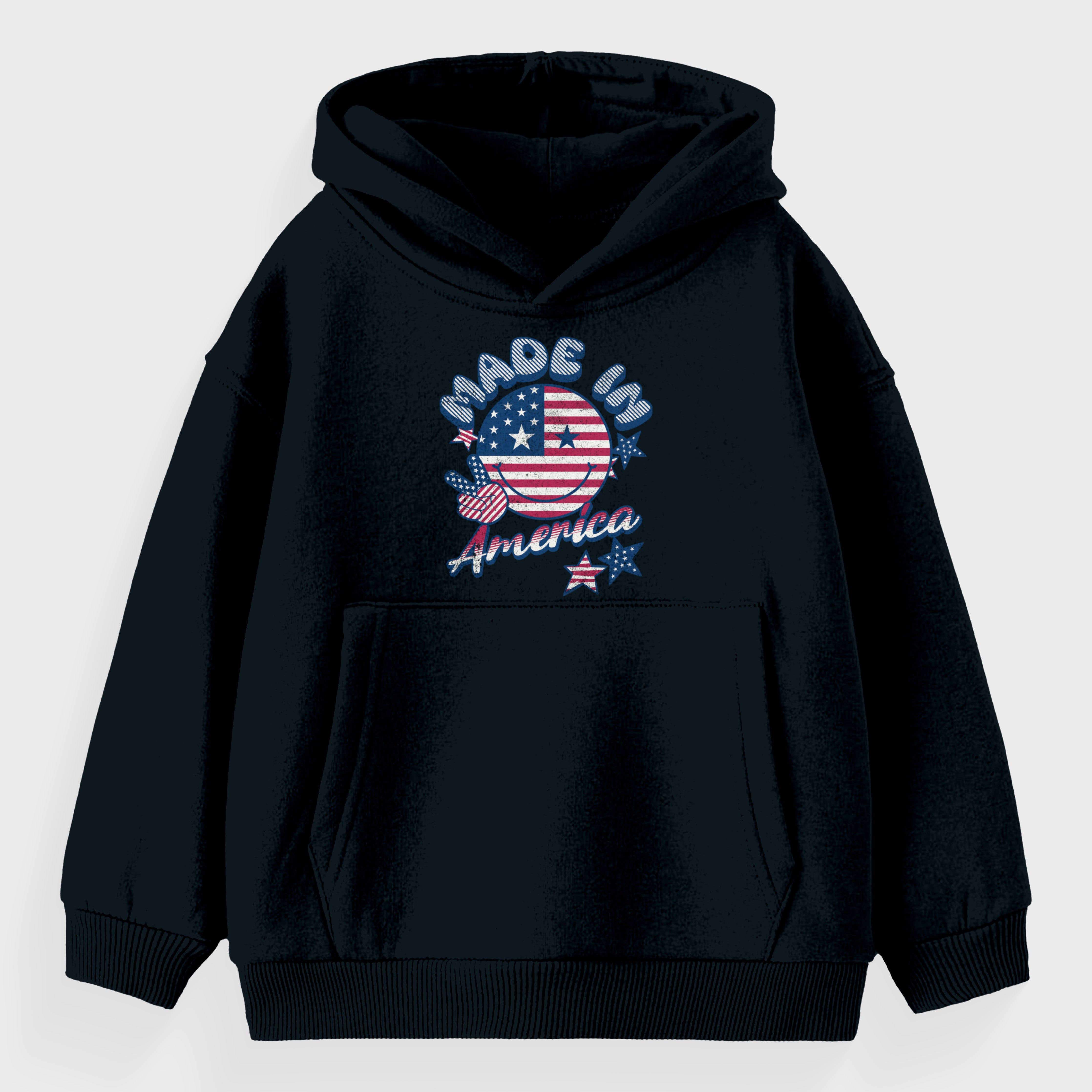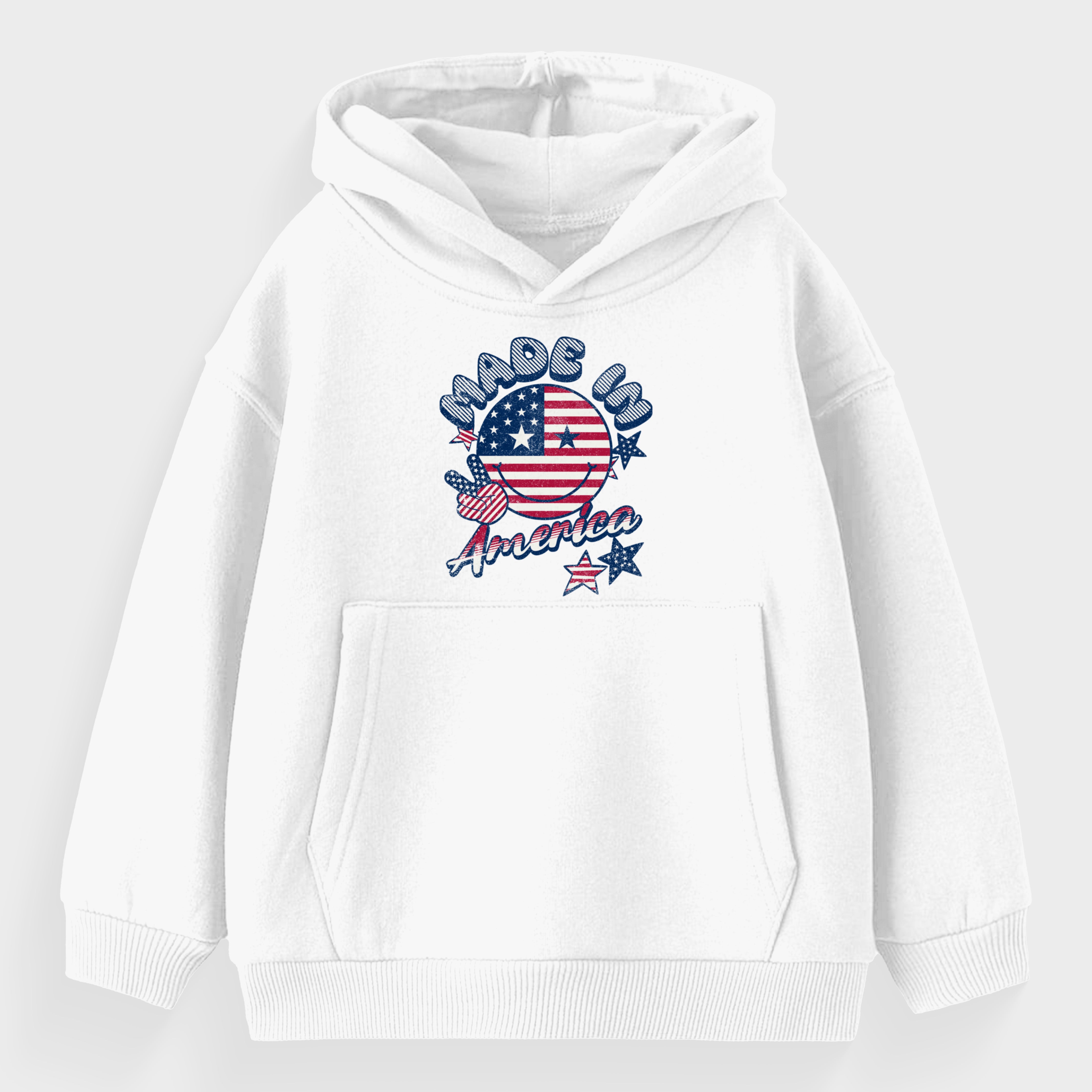 The Made in America Toddler Hoodie combines patriotic cheer with toddler coziness. Featuring American flag colors and a joyful smiley, it's a warm and playful way for toddlers to celebrate their American roots.