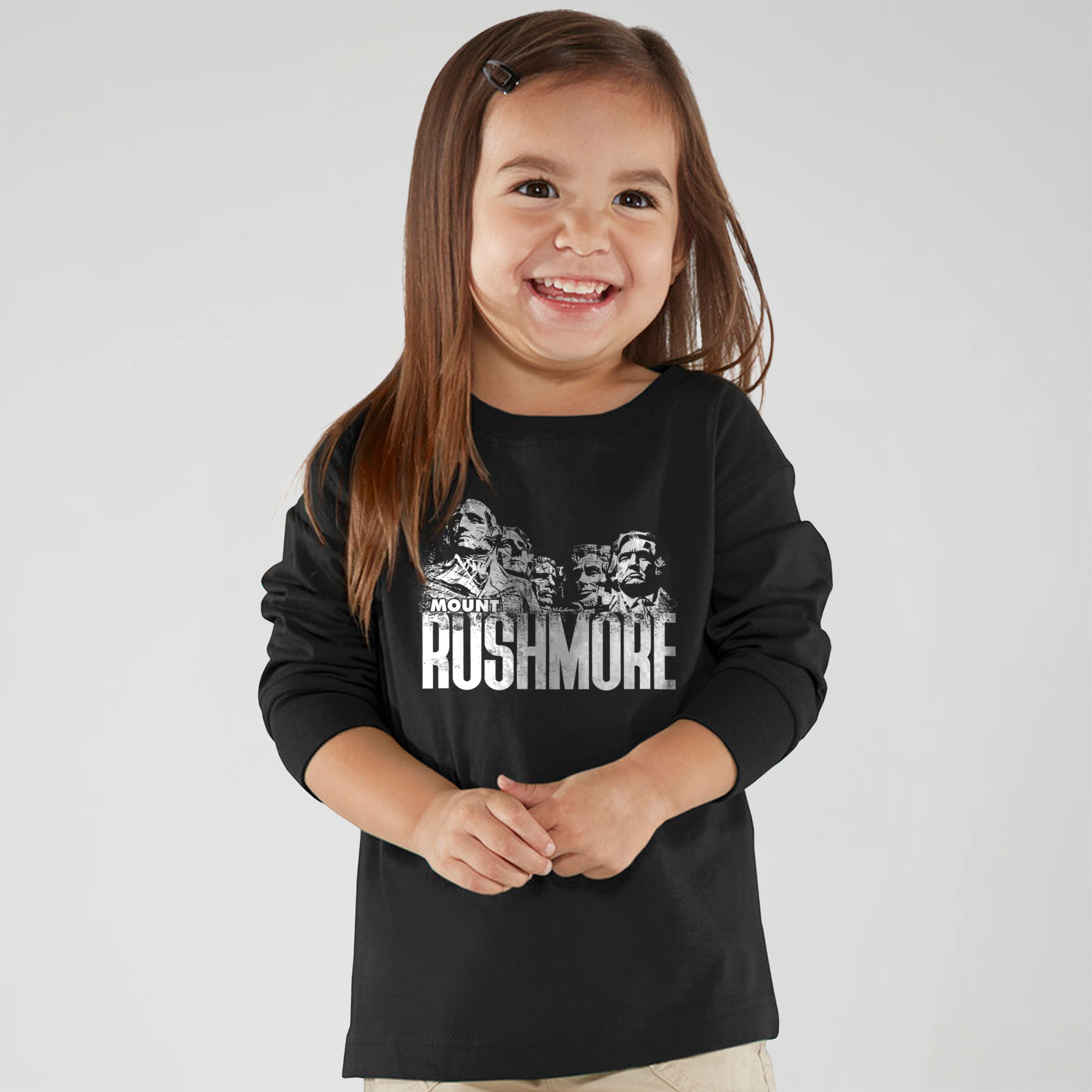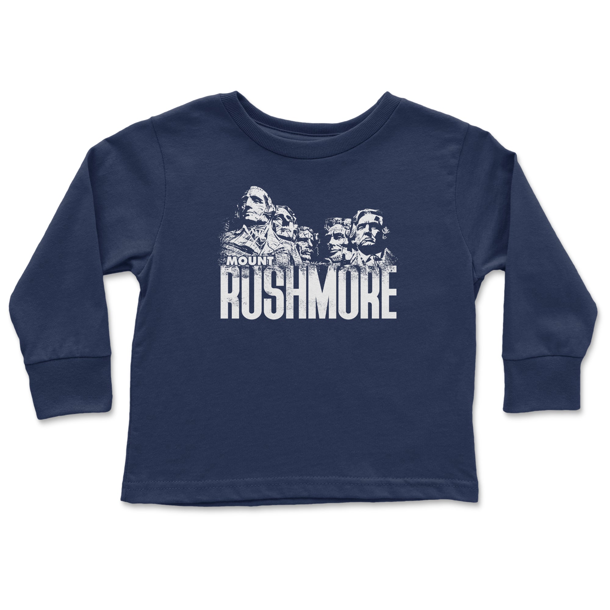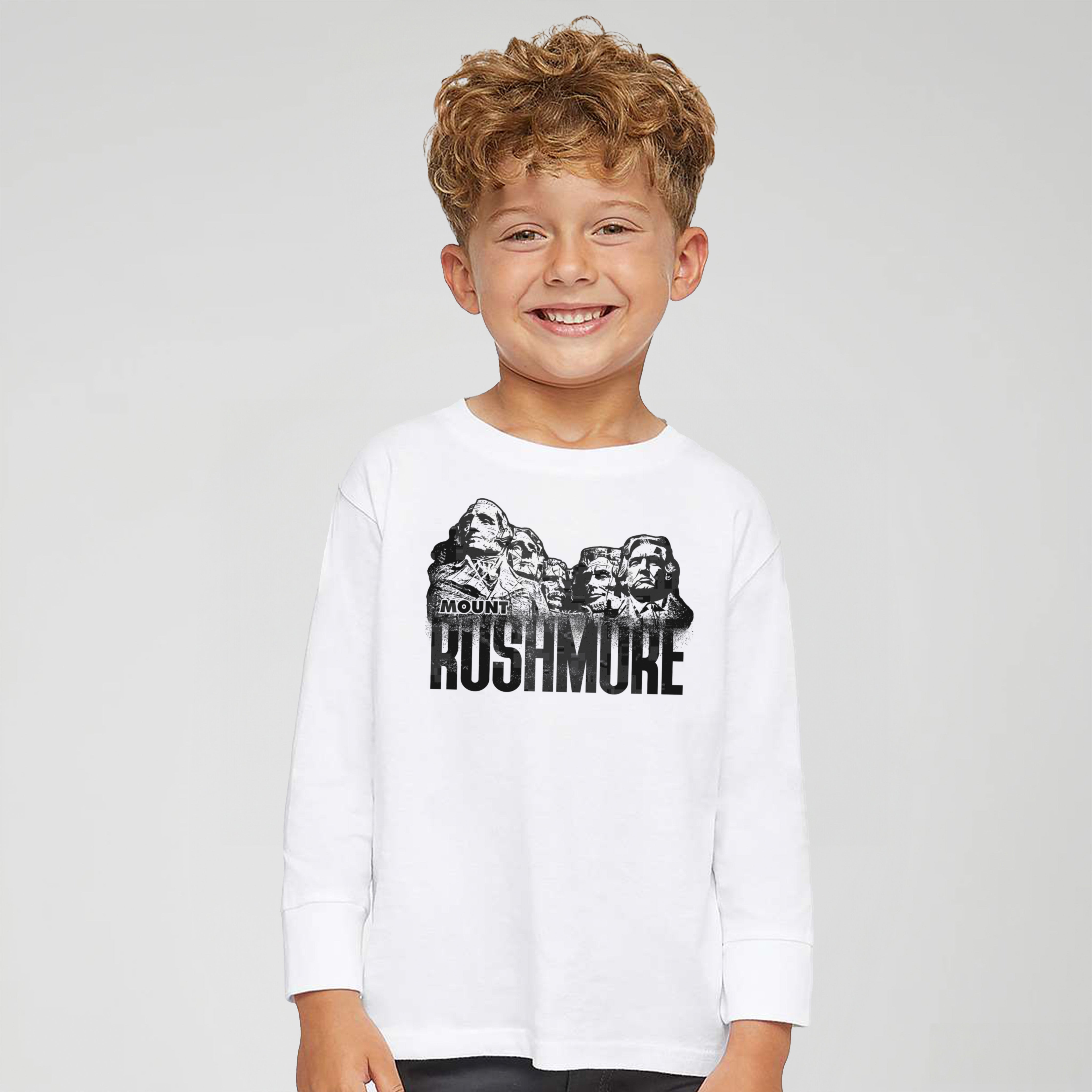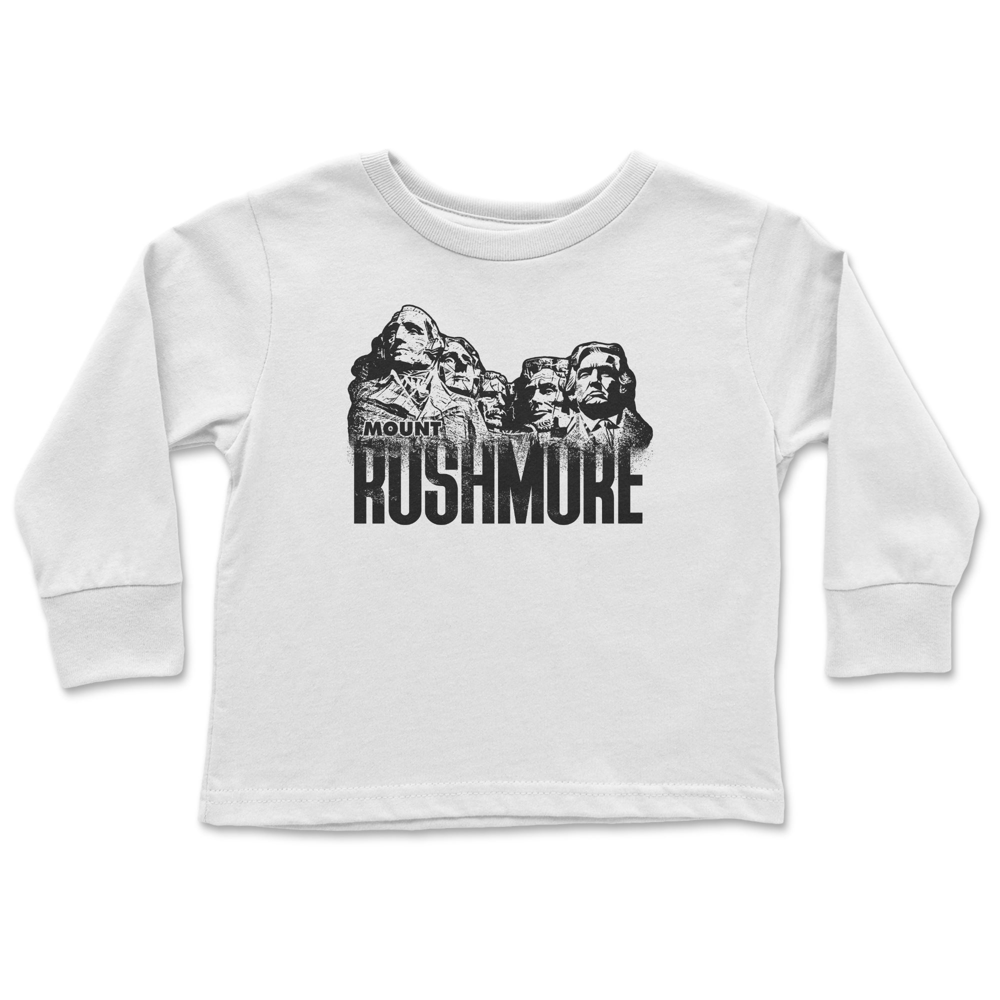 The "Modern Rushmore Toddler Long Sleeve" shirt brings a slice of American history to the youngest patriots. With a creative rendition of Mount Rushmore, it's a wearable history lesson that combines warmth, comfort, and a touch of modernity for every toddler's adventure.
