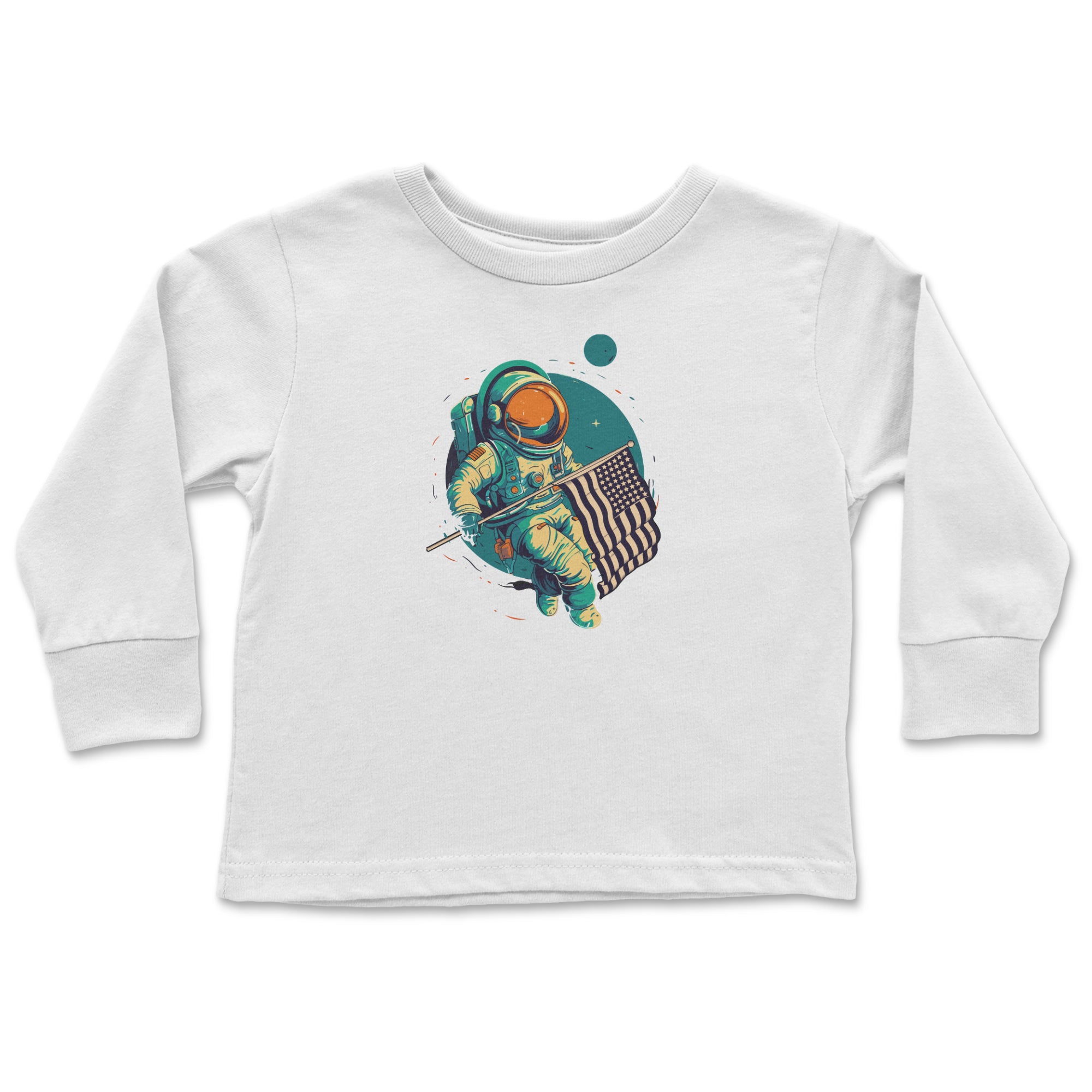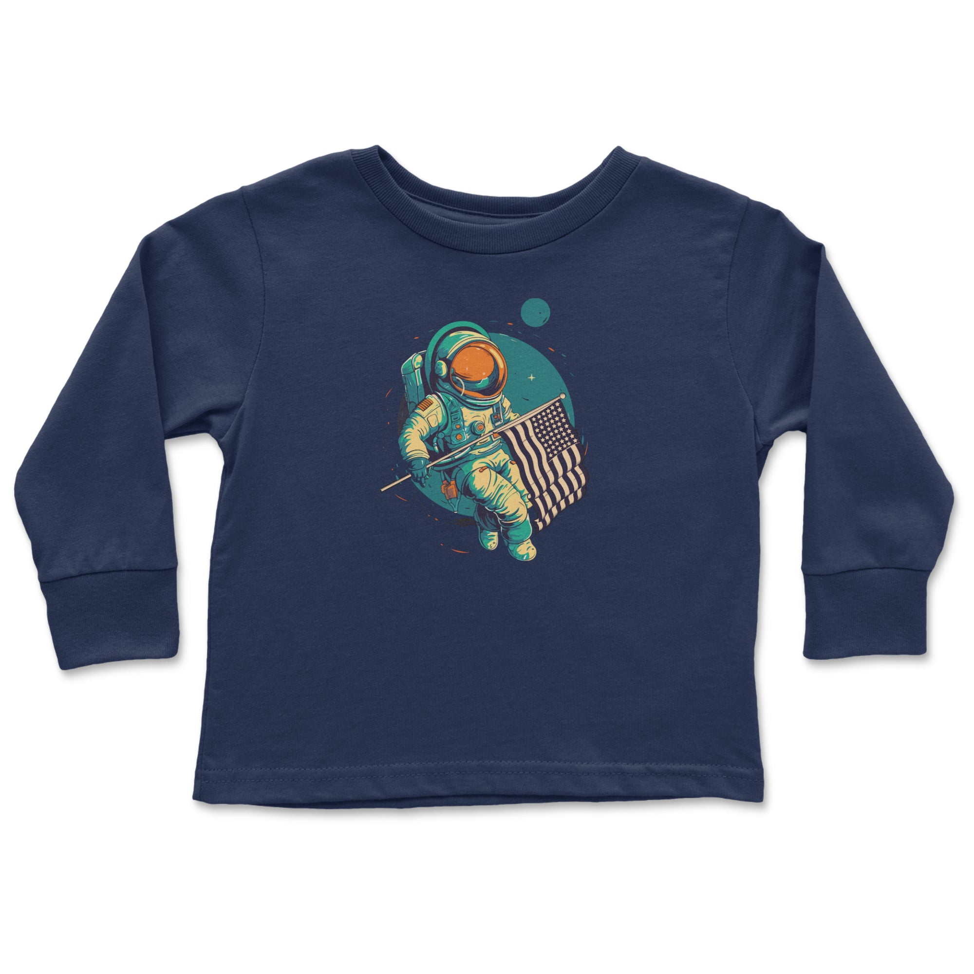 Keep your little astronauts cozy with the "Orbital Patriot Toddler Long Sleeve." This piece mixes the awe of space with a dash of American spirit, making it an ideal garment for toddlers who look up at the stars with wonder.