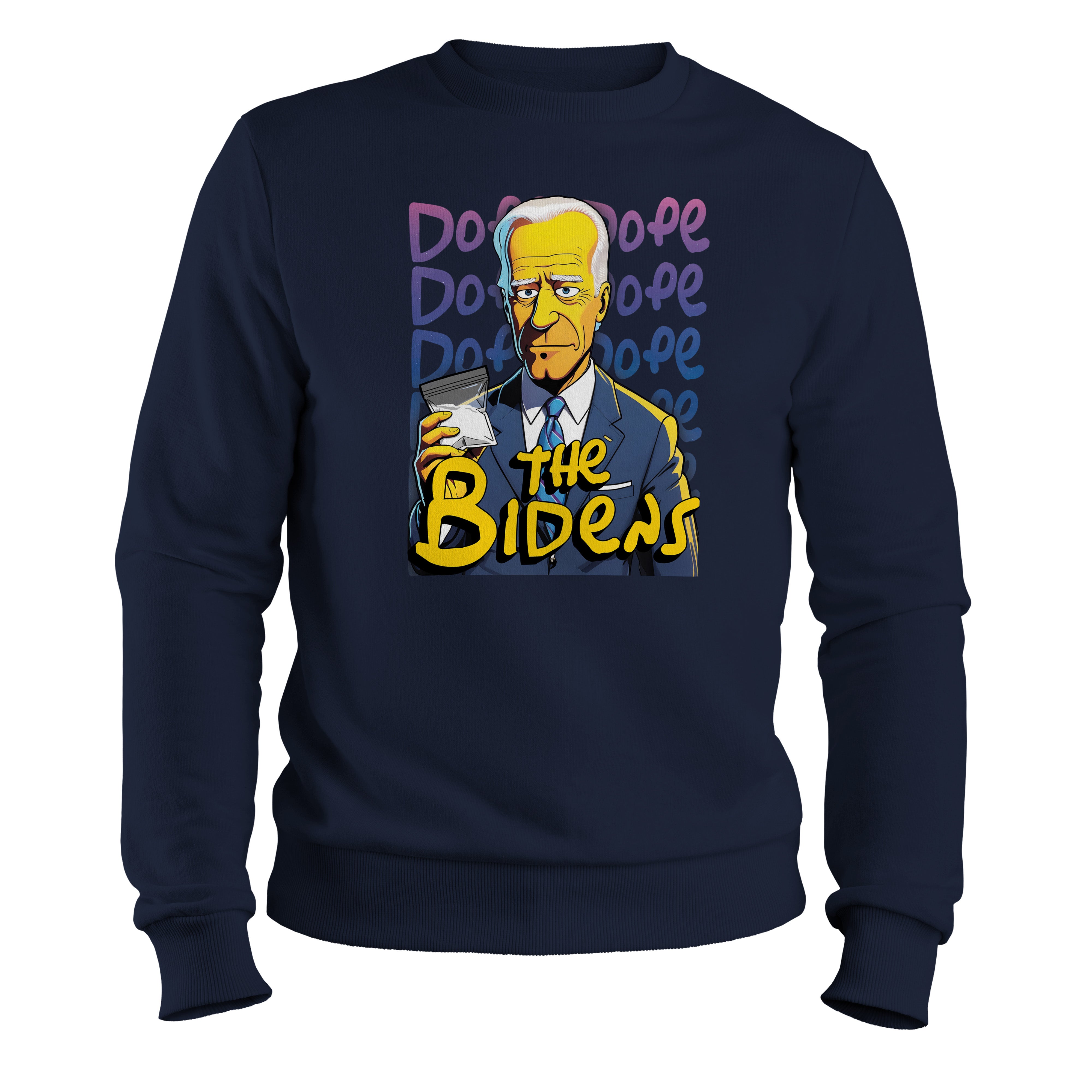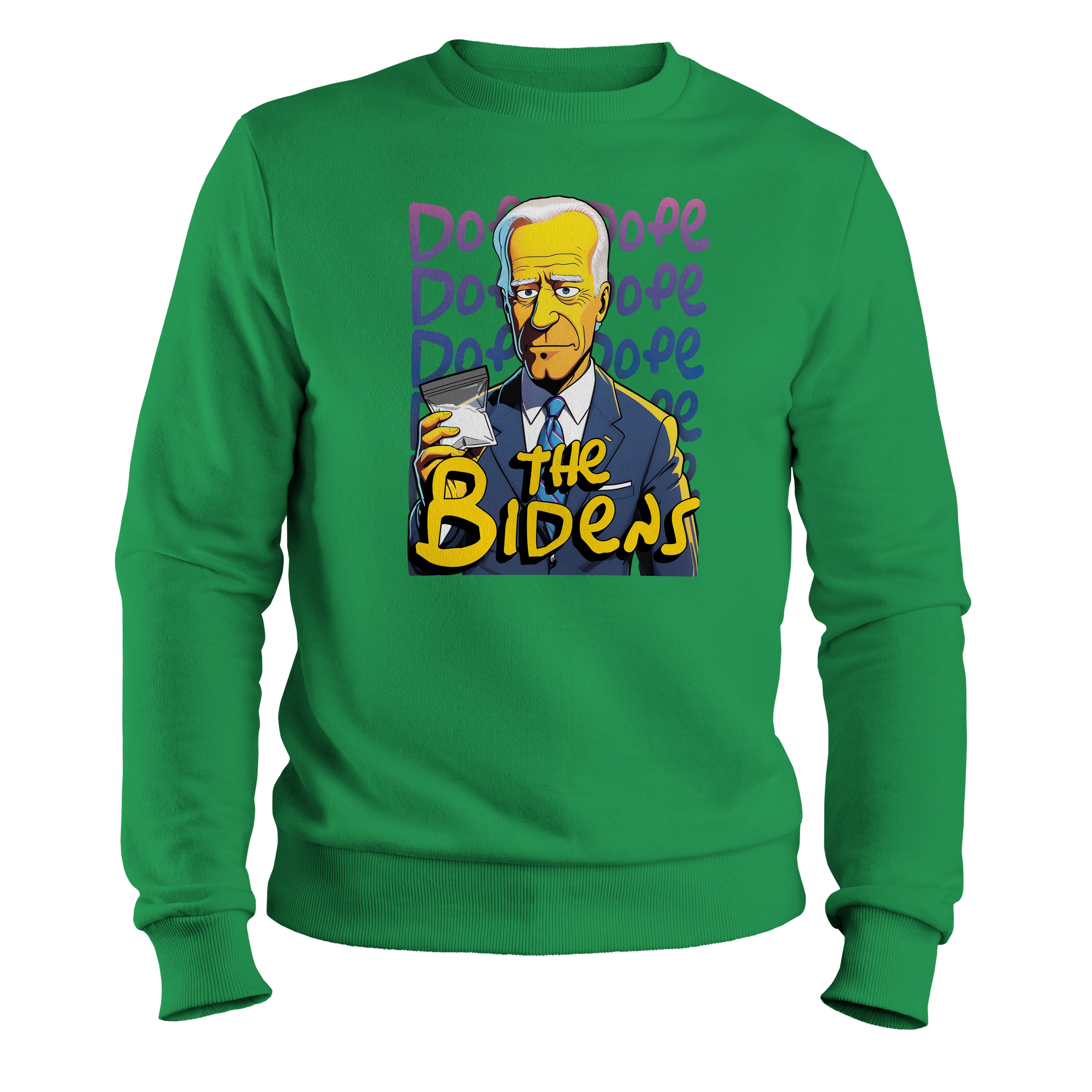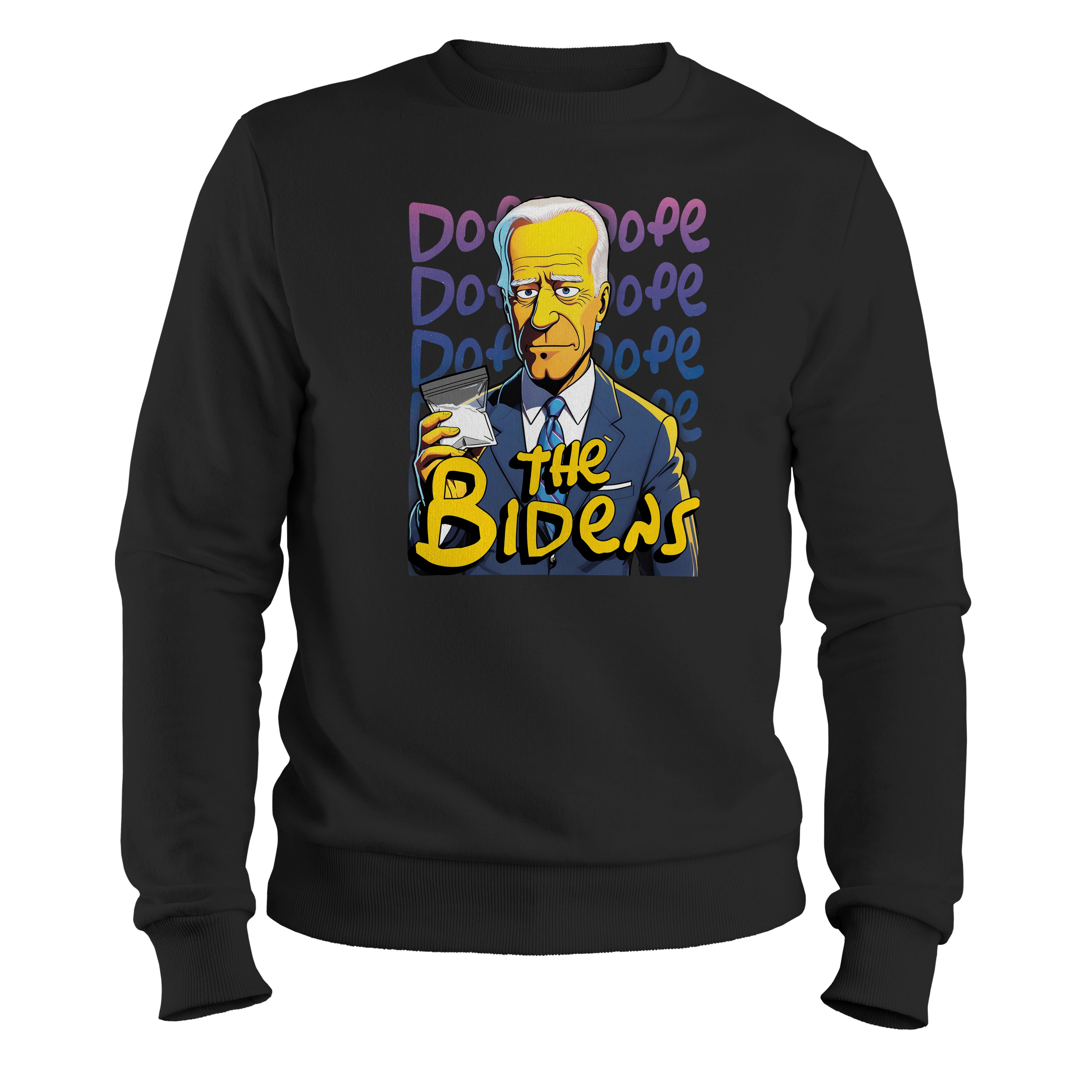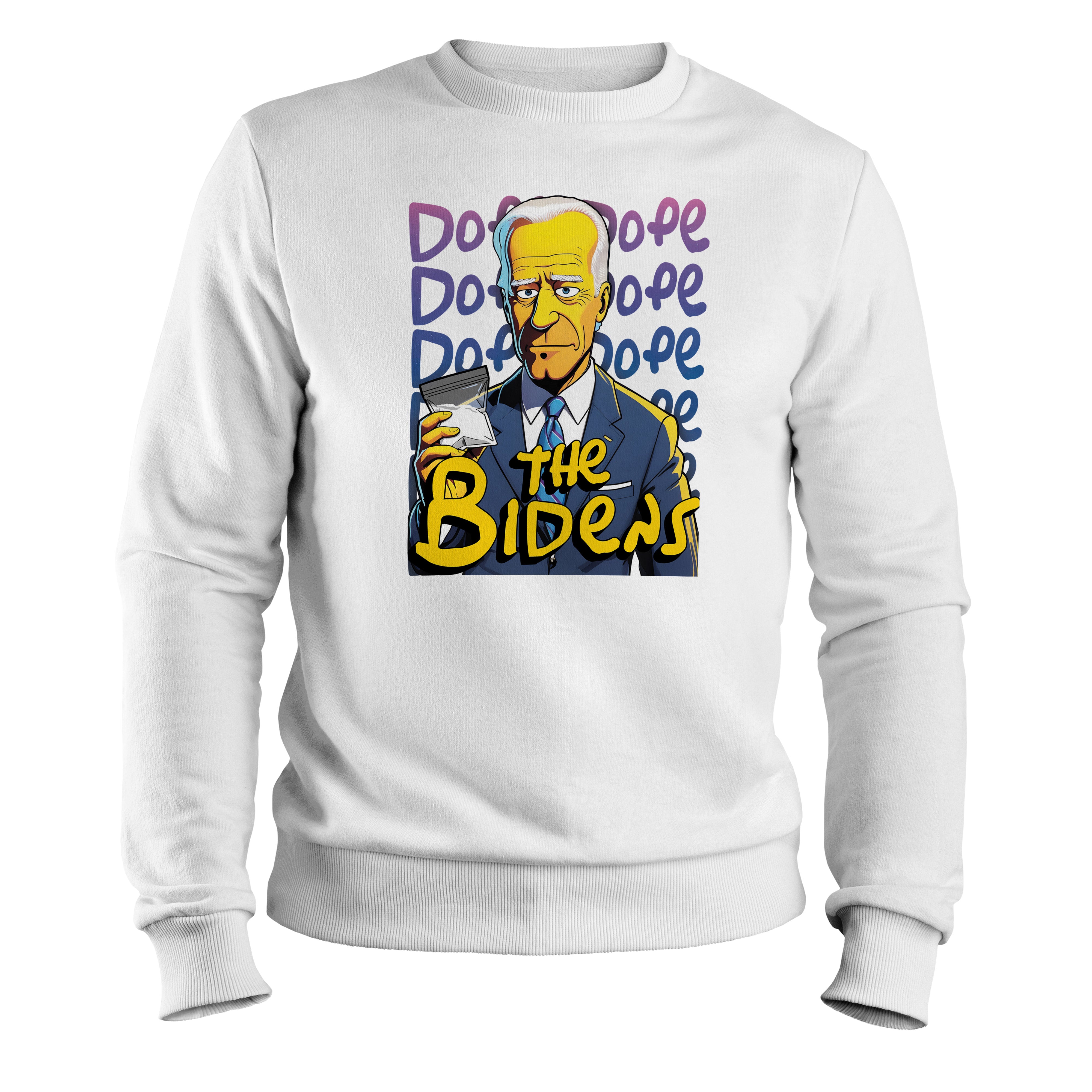 Warm up with satire in our 'The Bidens Dope Sweatshirt.' A playful blend of animation and political commentary, this sweatshirt offers comfort with a side of humor. Ideal for chilly days or lounging at home, it's a quirky addition to any wardrobe for fans of satire and pop culture.